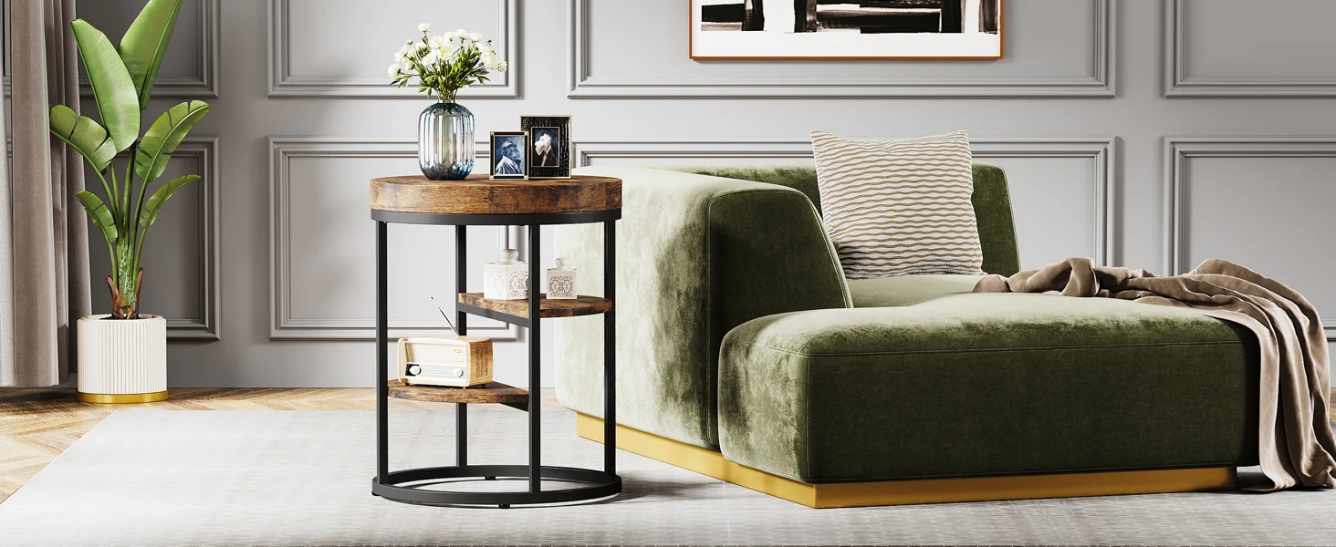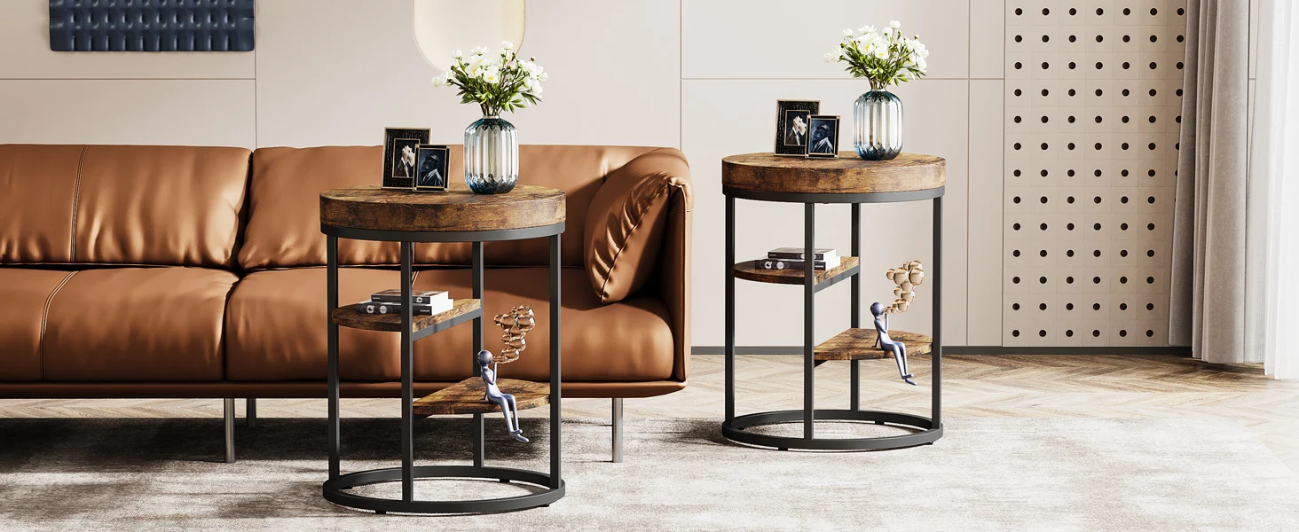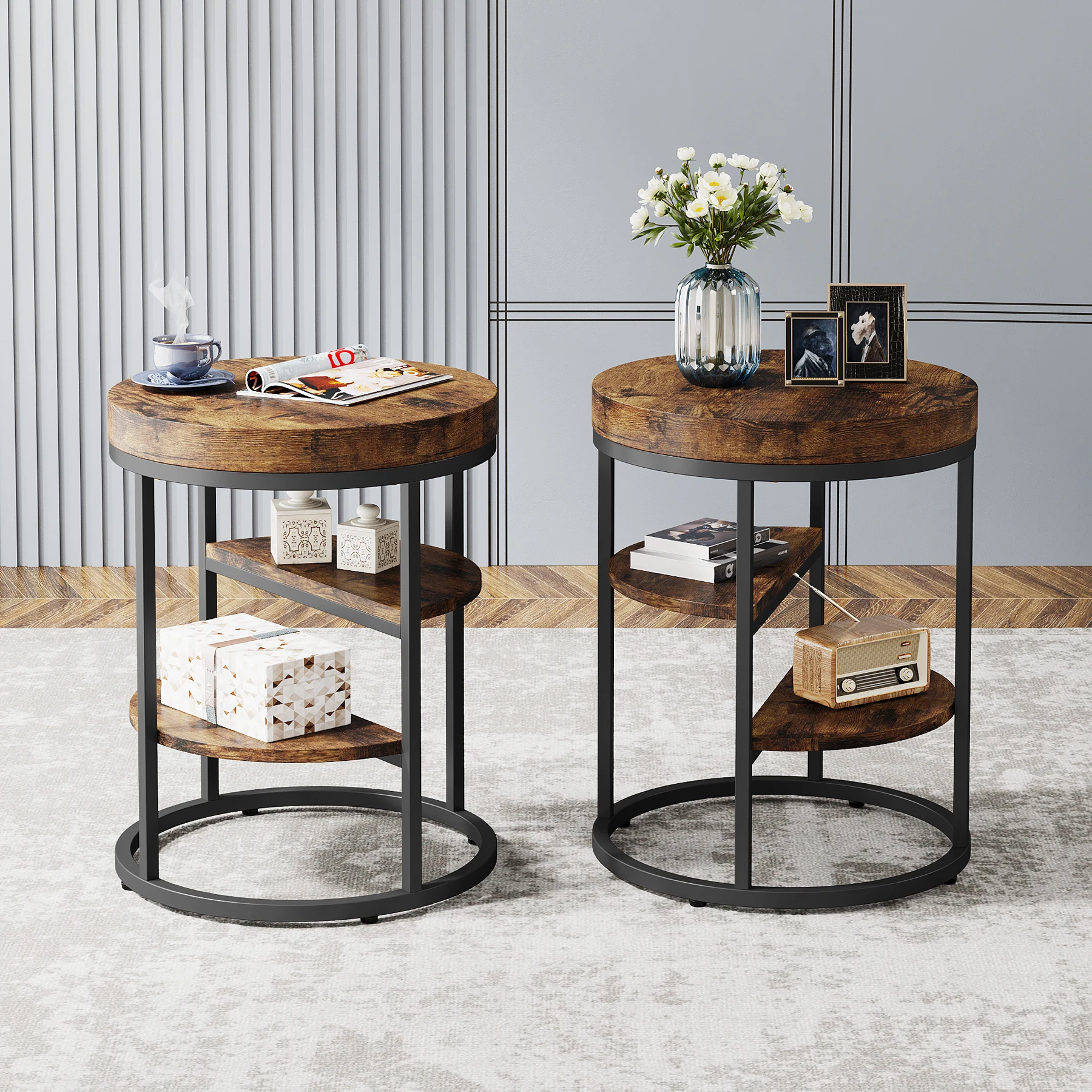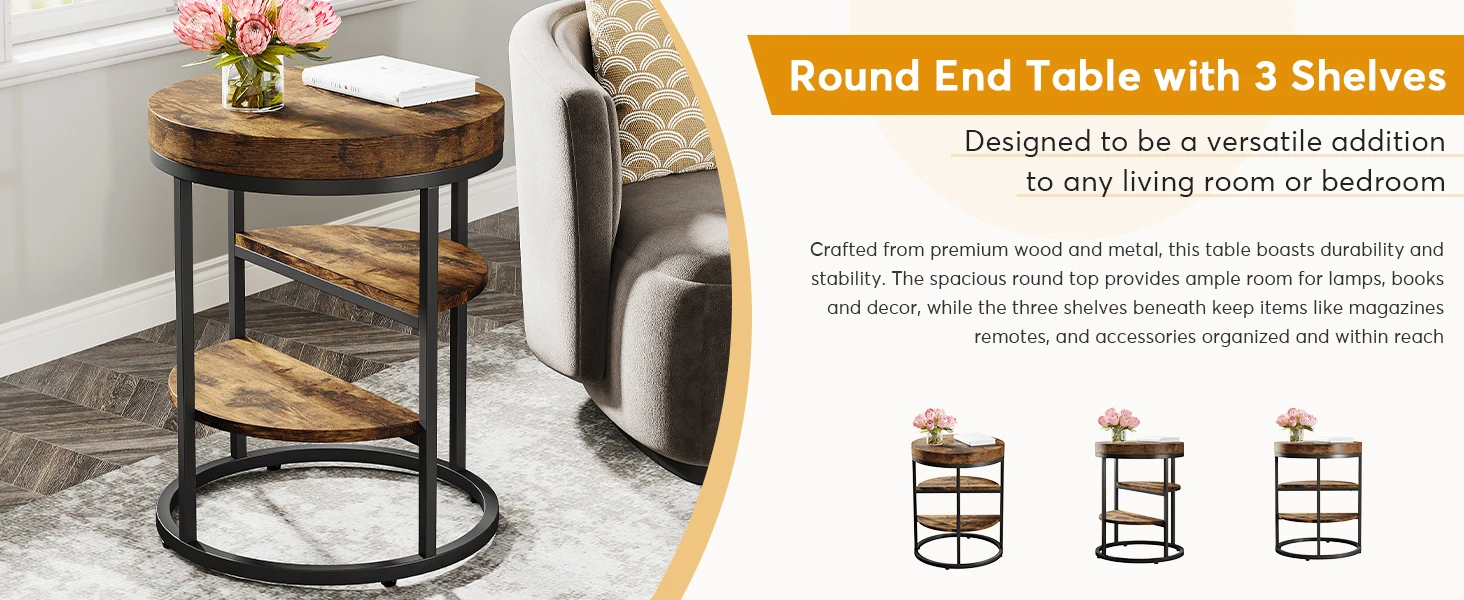 Tribesigns Round End Table, Small End Table with 3 Storage Shelves, Wood Side Table for Small Spaces, Industrial Sofa Table