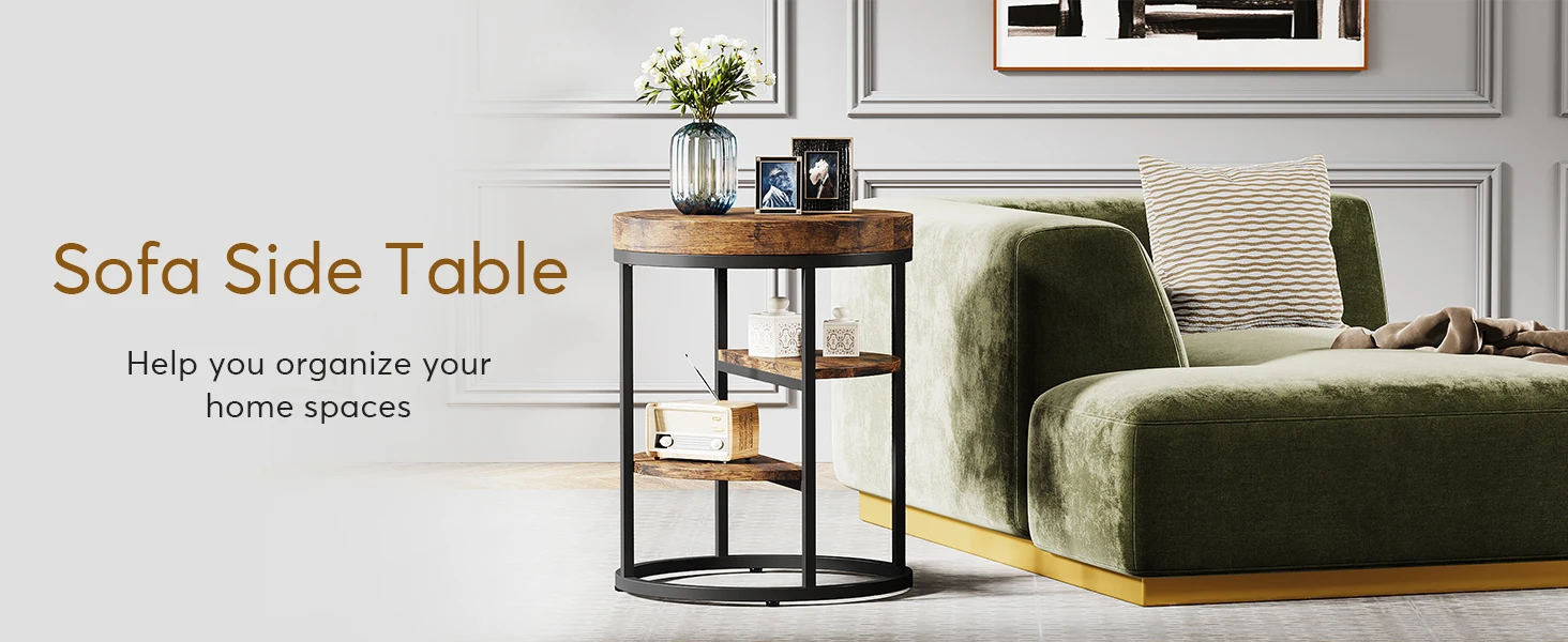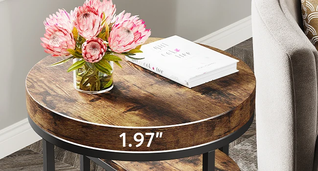 【Multi-Functional】 - With a tabletop measuring approximately 20 inches in diameter, this sofa side table offers ample space to hold everyday essentials such as glasses, mugs, remotes, and books. Its versatile design allows it to function as an end table, nightstand, bedside table, or accent table, providing endless storage possibilities for small apartments, dorm rooms, or living rooms.