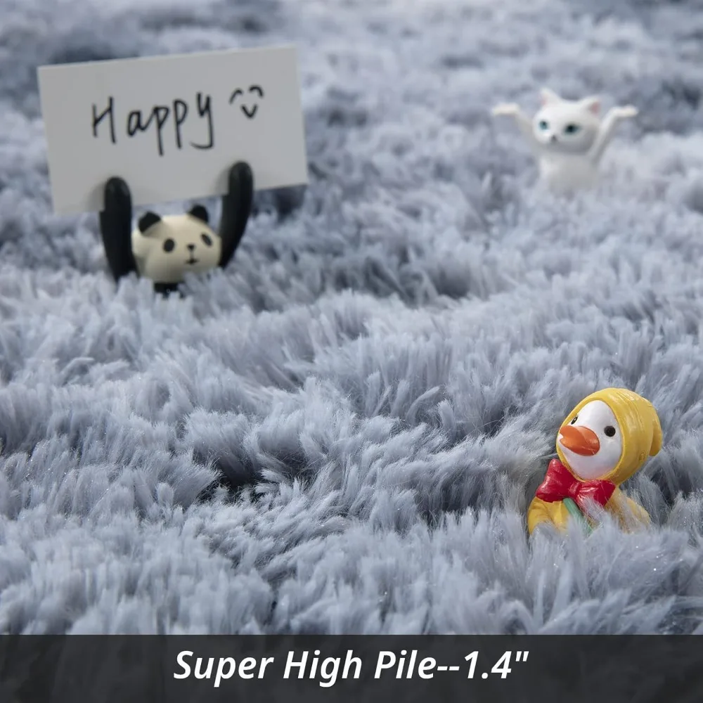 This product is an essential addition to your home decor collection. It features a large area rug that can cover an entire room, adding a touch of premium texture and enhancing the aesthetic appeal of your living space. The rug is designed with plush fibers and a sandwich structure that includes sponge and a non-slip backing, ensuring maximum comfort and softness. It boasts millions of 1.4-inch plush fibers that are crafted using a new tufting technology, which minimizes shedding and increases the rug's lifespan while providing a comfortable surface underfoot. The modern design of this shag rug makes it a standout piece in any home decor setup. Its simple yet elegant grey color scheme creates a warm and inviting atmosphere, transforming your space into a luxurious sanctuary. The softness of the rug is unparalleled, offering an incredibly relaxing sensation. The rug is equipped with a durable anti-slip back that provides a comfortable barrier between your feet and the cold floor. It features thousands of anti-slip particle points, ensuring that the rug stays firmly in place, even in high-traffic areas. For maintenance, it is recommended to clean the rug partially. Using a low-power vacuum cleaner or gently hand-washing with mild detergent will help prolong the life of the rug. Please note that the rug is vacuum-packed for shipping, and it may take 2-3 days for it to regain its original shape after unpacking. Give this plush carpet some time to settle in and enjoy its softness.