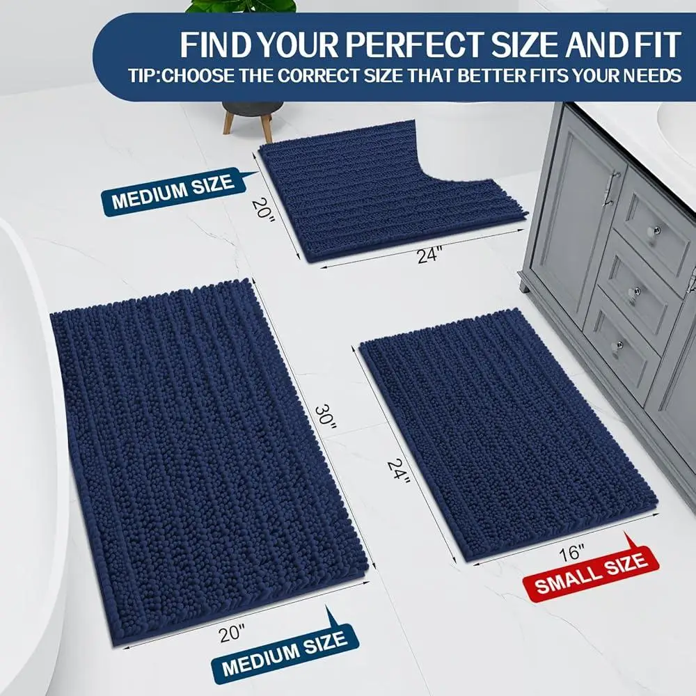 Ultra Soft Shaggy Bath Rug Thick Microfiber Absorbent Non-Slip Bathroom Mat Quick Dry Machine Washable Plush Carpet Home Decor
