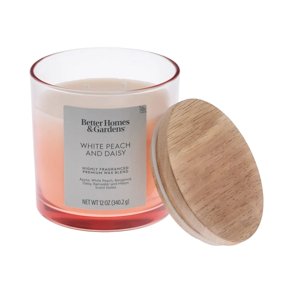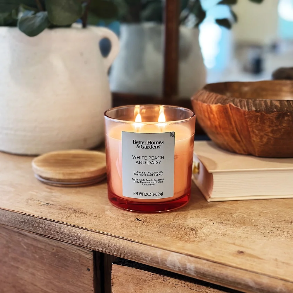 White Peach Daisy Scented 2-Wick Ombre Jar Candle 12oz Paraffin Blend Wax 40 Hour Burn Decorative Home Fragrance